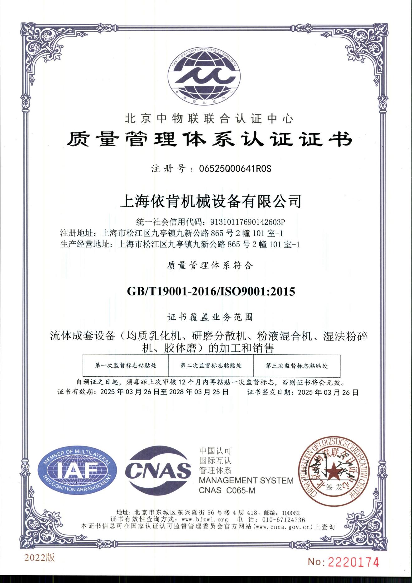 上海公海彩船6600机械自成立以来,一直致力于为客户提供高品质的流体高剪切混合设备及解决方案。此次通过 ISO 9001 认证,是我们在追求卓越品质道路上的重要一步,也将进一步推动我们在产品和服务上不断提升,为客户创造更大的价值。