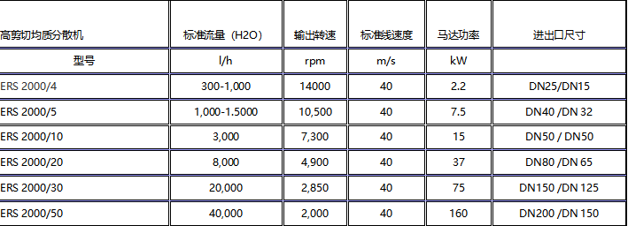 高的转速和剪切率对于获得超细微悬浮液是重要的。根据一些行业特殊要求,IKN在ER2000系列的基础上又开发出ERS2000超高速分散机。其剪切速率可以超过14000 rpm,转子的速度可以达到40m/s。在该速度范围内,由剪切力所造成的湍流结合专门研制的电机可以使粒径范围小到纳米级。剪切力更强,粒经分布更窄。由于能量密度极高,无需其他辅助分散设备。